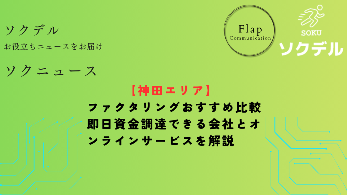 神田のファクタリング会社だけでなく、オンライン完結型ファクタリングのソクデルのようなサービスも比較しながら、自社に合った資金調達方法を選びましょう。