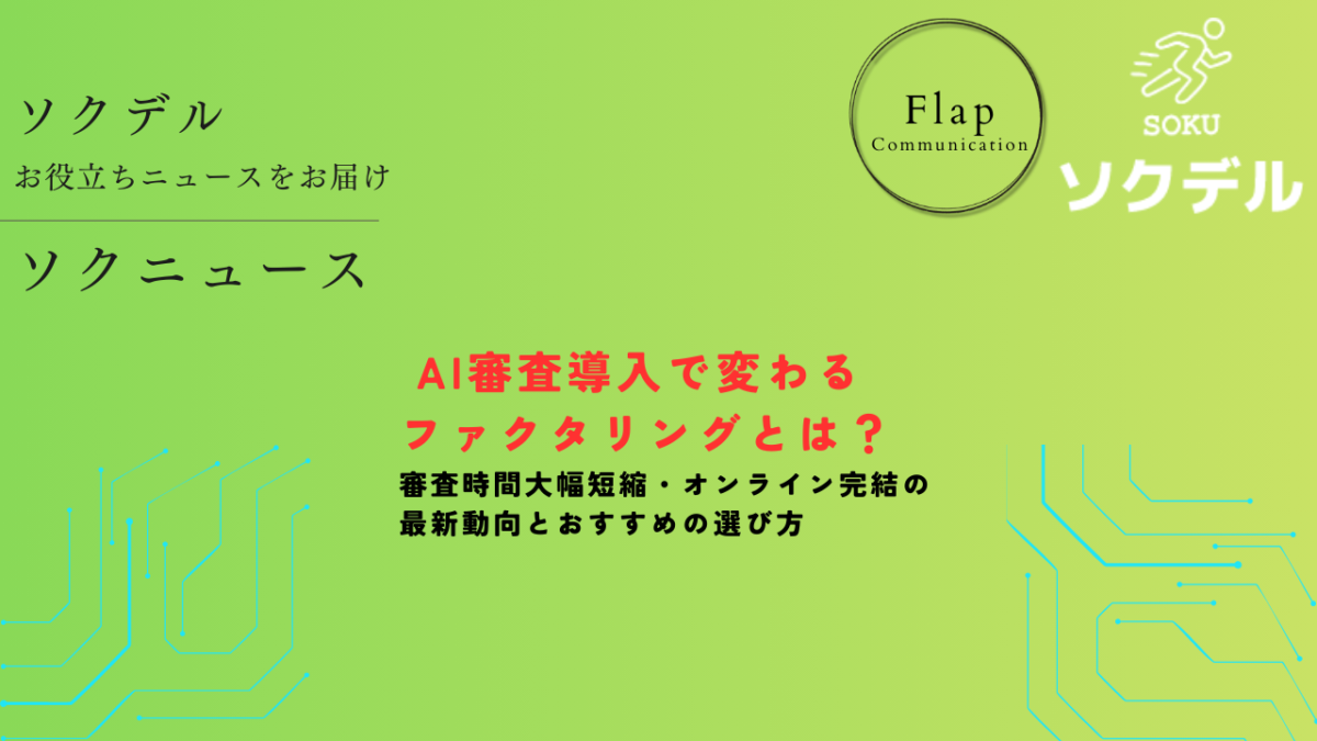 また、スマホから申し込みできるオンライン型や、書類提出からやり取りまでLINE完結で進められるサービスも登場しており、忙しい事業者でも利用しやすい環境が整ってきました。なかでもソクデルのように、スピード感と相談のしやすさを両立したサービスは、初めてファクタリングを検討する方にも相性が良いといえます。この記事では、ファクタリングの基礎から、AI活用による変化、サービス選びのポイント、そしておすすめのチェック項目まで、WordPressにそのまま貼れる形でわかりやすくまとめます。